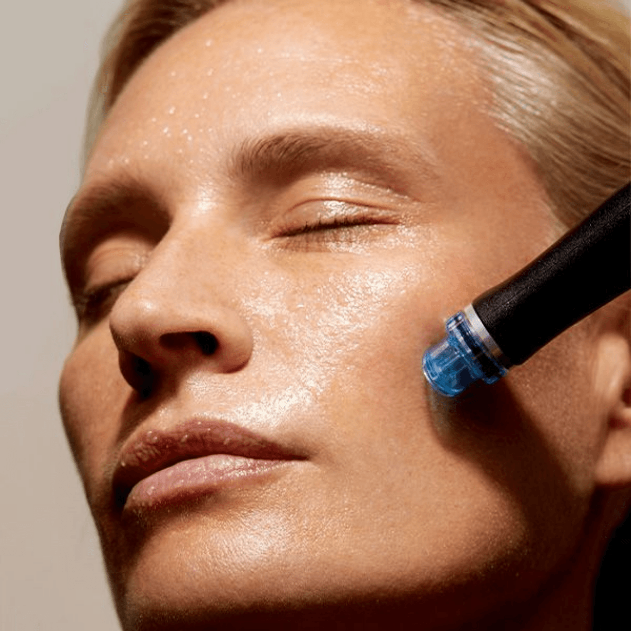 A sterile blade gently sweeps away dead skin and fine hair to reveal a smooth surface and allow deeper penetration of actives in the HydraFacial process.